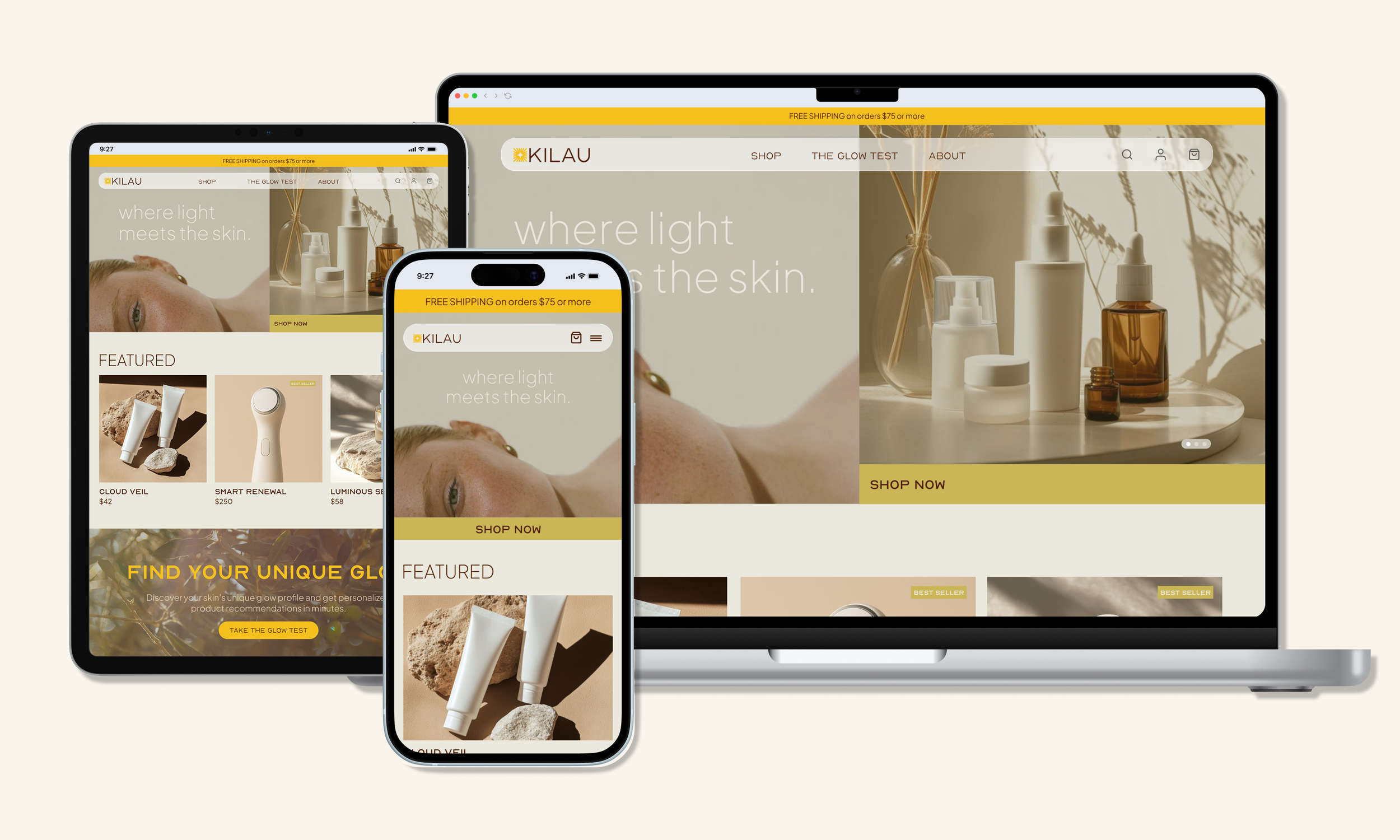 KILAU is a premium, responsive e-commerce platform positioned as a holistic self-care and dermatological science. Inspired by the Indonesian concept of kilau, the way light reflects and radiates from a surface, the brand’s digital identity is rooted in clarity, intelligence, and intentionality.