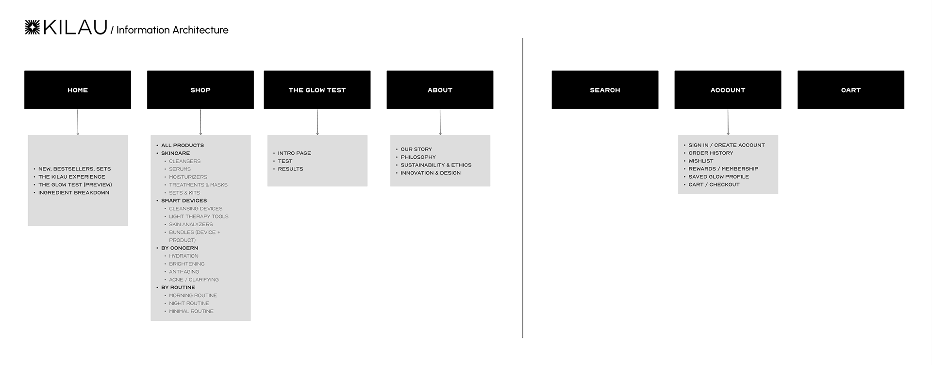 The IA was designed to optimize discoverability and flow. I prioritized a flat navigation structure that allows users to toggle between "Shop by Category" and "Shop by Concern." This dual-pathway approach caters to both the "expert" user who knows what they need and the "novice" user seeking guided assistance.